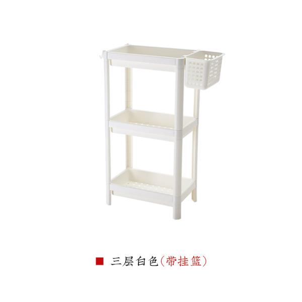 Product name : Plastic 3-tiers Movable Shelf Bathroom Storage Rack With Hanging Basket
